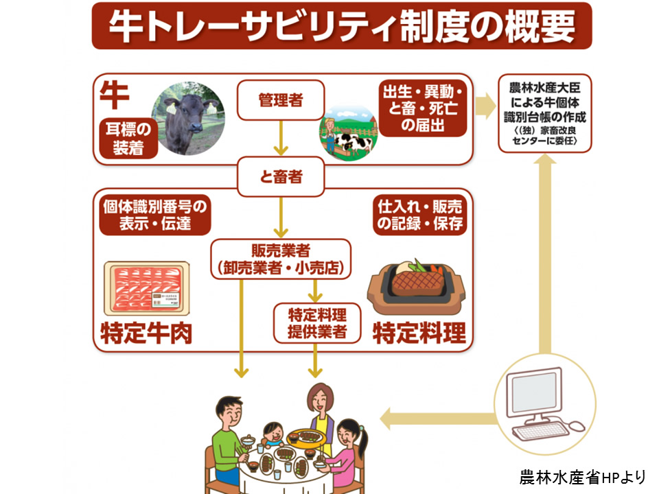 2016年8月17日 『牛のことなーんも知らない方(´-ω-`)』でも分かるようできるだけ図説をつけて書いていこうと思いますので、抵抗なく読んでいただけたらなーと思います。(*´ω`*) AI・ETの説明に入る前に、牛の世界での繁殖事情について・・・。 日本で飼われている牛は大きく分けて、ホルスタイン(主に牛乳を生産)と黒毛和牛(主に牛肉の生産)がいます。人間でもおっぱいが出るのは子供を産んだお母さんだけであるように、牛でも牛乳を出すのはお母さん牛だけです。さらに、お肉になる牛は良い肉質(柔らかくて美味しい)で食べてもらうために、若いうちに出荷されます。よって、たくさんの牛乳と美味しいお肉のためには、子牛をどんどん産ませなければなりません。 日本では、2002年の日本初となるBSE(牛海綿状脳症)の発生をきっかけに、2003年より『牛トレーサビリティー法』が成立し、日本内の全ての牛に10ケタの個体識別番号を表示させることが義務となりました。 この10ケタ…なんと誰でも調べることができるのです!!