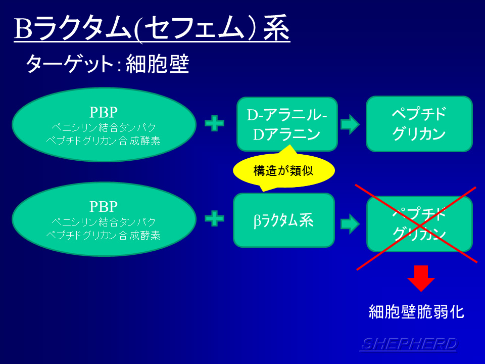 βラクタム系抗生物質の構造がこのD-アラニル-Dアラニンと非常に似ているのです!!