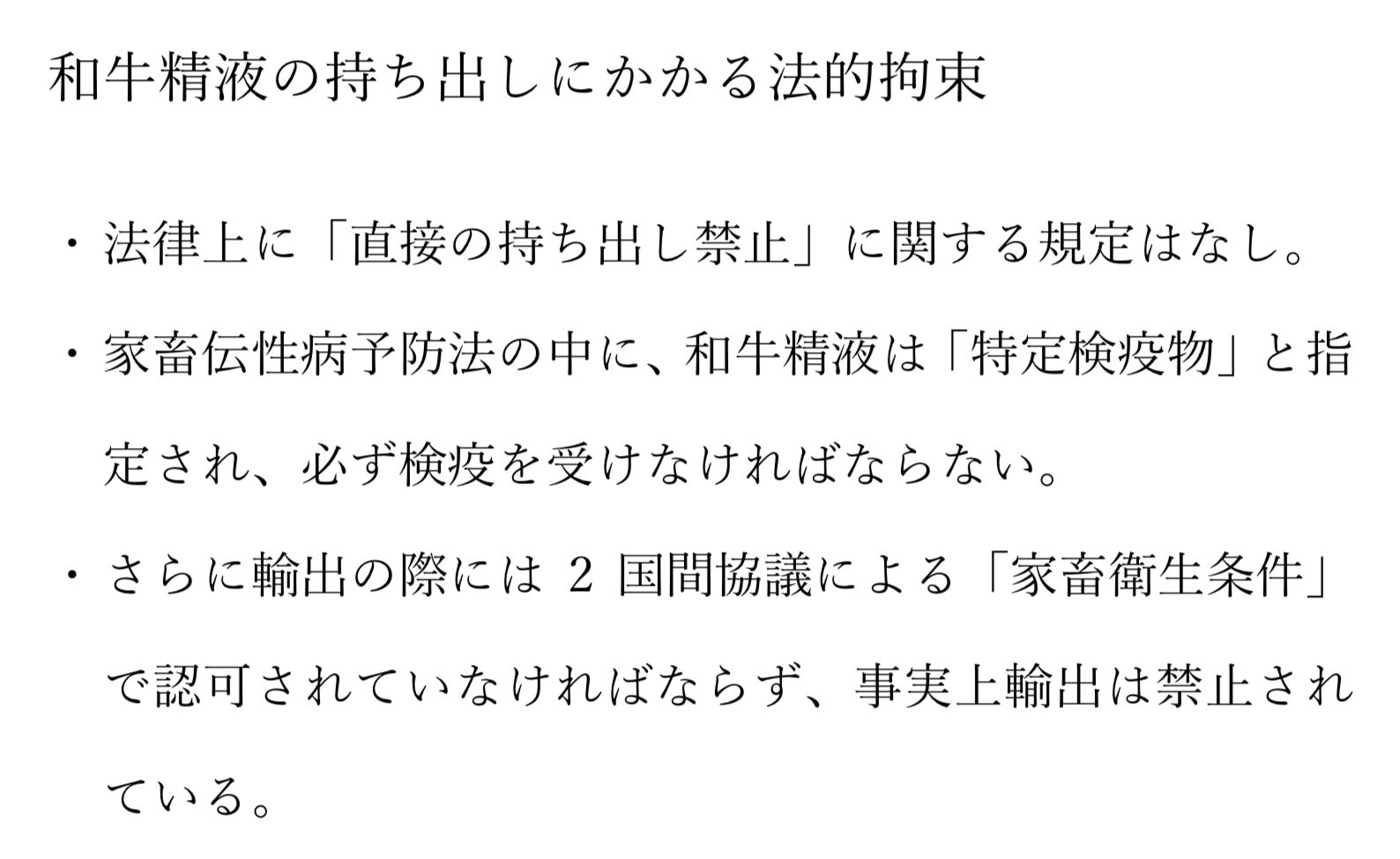 2019年3月11日 先日、天下の国営放送の取材を受けました。ここのところ話題に上がっている「和牛の精液および受精卵の持ち出しについて」について少し話してほしい、との依頼でした。 3月8日に放送があったそうですが、僕は知りませんでした。だって、放送局から放映の連絡メールが来たのが当日の9:08pmで、放送は9時からちょろっとでしたから(-_-) この放送の内容を見て、「ま、報道ってこんなものだろうな」と自分を納得させつつも、なんだか釈然としませんでした。ま、本音を言うと「自分たちの都合で勝手に切り取り編集しやがって!」という、取材後のいつもの想いです。 精液や受精卵の持ち出しについては、いろいろな考え方があります。「日本だって乳牛の系統造成の時は他の国の精液を使ったじゃん!」という人の言うことも解りますし、「和牛はこの国の貴重な輸出資源で国の宝なのだから、絶対持ち出しなんて許せない!」という考え方も解りますし、僕もどちらかというと、この国の畜産を護る立場としては後者の意見に賛成です。 しかし、今回の事件は、そういった「いろいろな考え方」とは関係なく、法を犯したことが問題なのです。精液輸出を直接禁止する法令がないので解りにくいのですが、図のようにいくつかの条件があってそれをクリアしないものは「違法」なのです。 ですから、今回の事件は「考え方」以前に、「それぞれの国を生物汚染から護るための法令違反」なのです。感情が入る問題ではありません。ということも含めて、たくさんお話(2時間以上)したのに、みんなの興味を引きそうな部分だけ切り取るのって、ま、この国の報道では仕方ありませんが、もう二度と「生放送」以外の取材はお断りします。 前の記事 ワクチンの正しい使い方 その2 | 次の記事 ワクチンの正しい使い方 その3 |