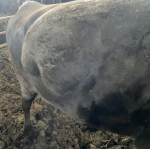 2025年10月3日 *********************************************************** 現場に到着すると、確かに母牛の右けん部あたりがボッコシ腫れています。 さらに皮膚の表面には引っ掻いたような跡も・・・。 これは挫傷(打撲傷)によって、皮下に血液や漿液などの液体が貯留している状態と診断しました。また「引っ掻いたような痕跡」から、他の牛が角でつついたり、乗駕などによるものでは?と考えました。もしかすると、この母牛は牛群の中で序列が低い、もしくは相性の悪い牛がいるのかもしれません。 そこで治療と並行し、牛の隔離もしくは少ない牛群への移動をお願いしました。これは「挫傷を治す」という目的もありますが、もう一つはストレスによる流産などのリスクを減らすためです。慢性的なストレスは、妊娠維持をするうえでNGです。 もしこういった牛を発見された際は、隔離もしくは移動をご検討ください。 |