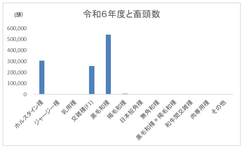 こうして見てみると、令和6年度のと畜頭数の98.5%を占めるこの3種(黒毛和種、ホルスタイン種、交雑種)は、それぞれがまったく異なる論理で動いているように思います。ただの数字の羅列に見えると畜頭数の内訳ですが、じっくり眺めていると、日本の畜産がどんなバランスの上に成り立っているのかが、少しずつ見えてくる気がします。見当違いな想像であることも多いですが、このようなグラフやデータを見ながら思いをはせる時間が小生意外と好きですね~~~。さてさて、今後はどうなっていくのでしょう?