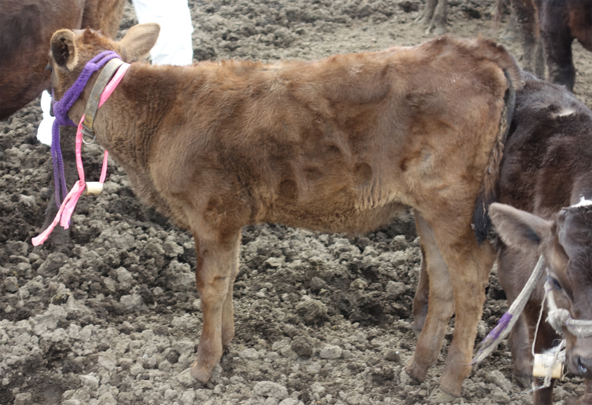 ですから、母牛に与える分量を体重割で子牛に与えていると、40日程度で銅中毒が発症します。僕の経験では、発症に気が付きにくいのか、前日まで元気にミルクを飲んでいた子牛が急にミルクを飲まず死亡してしまう、というものでした。しかも、添加剤の給与が原因なので、たくさんの子牛で続発してしまうのです。