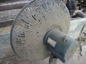ほこりも積もればなんとやら・・・。こんな状態では風量が一気に低下します。逆に、しっかりと掃除してあげれば、その扇風機が起こすことができる最大限の風を牛舎に提供できるのです。掃除にかかるコストは道具、あなたの時間と労力のみです。もし扇風機のカバーが汚れていたら、スイッチを入れる前にしっかりと掃除してあげましょう。