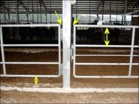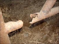 みなさん、今年ももうすぐ終わりですね。おうちのお掃除もそろそろ終わりましたか?(うちはまだですが..)せっかくですから、牛さんの家もいろいろと見直してみましょう。 今回は、牛舎の危険箇所について一緒に考えてみたいと思います。まずは、ワクの取り付け部の隙間(上の写真)。発情やらふざけたりやらで、ここの隙間に足首を挟んで骨折する牛さんが意外に多いのです。このほかにも、ワクの横棒の間隔も大切です。30cmくらいの時、首を出して下の棒をなめているうちにアゴが下の棒に引っかかって首を絞めて死んだ牛さんがいます。 また、一番下の横棒が低いと、牛さんは横になって伸びをしたときに、足をワクの外に出してしまい、急に立とうとしたときなどに挟んで骨折してしまう例もあります。逆にここの間が30cmくらいあると、牛さんが寝ているときに頭をワクの外に出してしまい、首を挟んで起きあがれずにガスで死んでしまっているケースもあります。 それから、古い牛舎ではワクがさびて折れているのをよく見かけますが、この切断面で牛さんが足を切ったりする事故も年間数件治療します。いずれ直さなければならないのでしたら、せっかくですから事故が起こる前に修理しちゃいましょう。下の写真のようなケースでしたら、一回り太めのエスロンパイプか鉄管を通してドリルで穴をあけ、鉄板ビスで止めておくだけでも危険は減ります。 |
