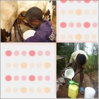 お乳の搾り方ですが、まず必死で乳房に吸い付こうとする子牛を押しのけます。人工哺乳はしていないので、子牛だってお腹ぺこぺこ。お母さんの乳房に必死で食い下がりますが、繰り返し払いのけているうちにあきらめます。使用人は子牛のよだれでヌルヌルになった乳房を手でぬぐいます。そして牛のしっぽがパタパタしないように、しっぽの先を牛の後ろ足に結びつけ、おもむろに乳房の横にしゃがんで乳搾りを始めます。あ、乳絞り前に手を消毒することは特にありません(笑)。両ひざでかかえた小さいプラスチック容器(洗濯洗剤がはいってた容器)にお乳がいっぱいになったら、大きな容器に移し、自転車で集乳センターか牛乳屋に持って行きます。 乳価は1リットル200フラン(40円)前後。牛乳屋さんはこれを300フラン(60円)で量り売りします。一方で、スーパーで売っているパック詰めの殺菌牛乳はリットルあたり1,000フランとかなり割高です。 気になるのは乳量。一頭あたりの乳量は品種によってまちまちですが、だいたい10リットル足らず、特に乾季はえさも入手できないので、在来種(アンコーレ牛)だと3リットルくらいしか出ない牛も珍しくありません。乳量が少ないうえに、かなりの量を家族や親戚で消費してしまうので、数十頭も飼っているような裕福層は別として、2、3頭だけの一般の農家さんが牛乳から得る現金収入はわずか。それでも、牛から得られる堆肥で農作物の収量がぐっと増えるというメリットはおおいにあるようです。 |